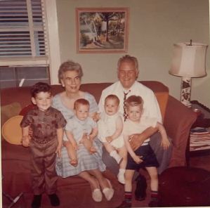 When that era ended and there were grandkids, Bob, Tom, Linda, David and Kathy, there was also Amityville and it's great pines, its little grove of hibiscus. The extention on the back of the house for a new living room, where the great family heirloom, the grandfather clock clicked loudly and chimed acturately on the hour. There Grandpa Weber had a basement workshop, a cluttered storage shed in the back where Norm's boat was stored and an attic room. His rustic attic room adjoined the finished bedroom of Eva's, with its remote control televsion and other amenities. It was a room where the rafters and framing of the house showed and only an old picture of Ole' Pop Herbert was tacked on the wall. In his later years Grandpa broke out the oatmeal the night before and sometimes had a "hootenanny after midnight."